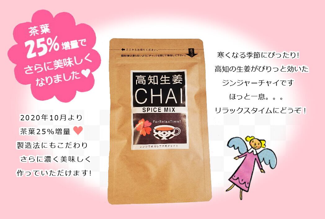 高知生姜CHAIは、自家栽培生姜を スパイス中一番多く使った ジンジャーチャイです。