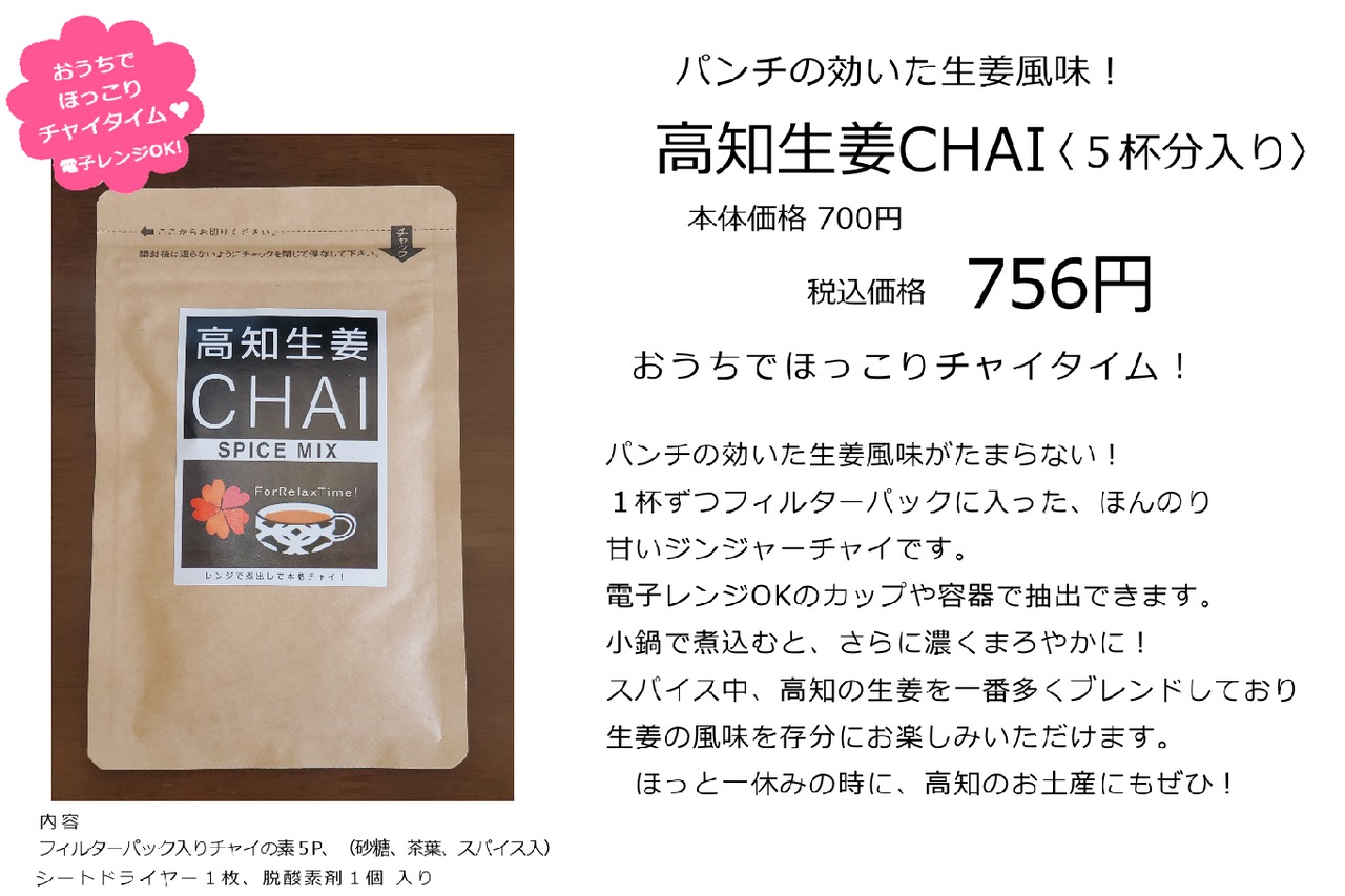 高知生姜CHAI5杯分入り 756円(税込)×4袋 3,024円
